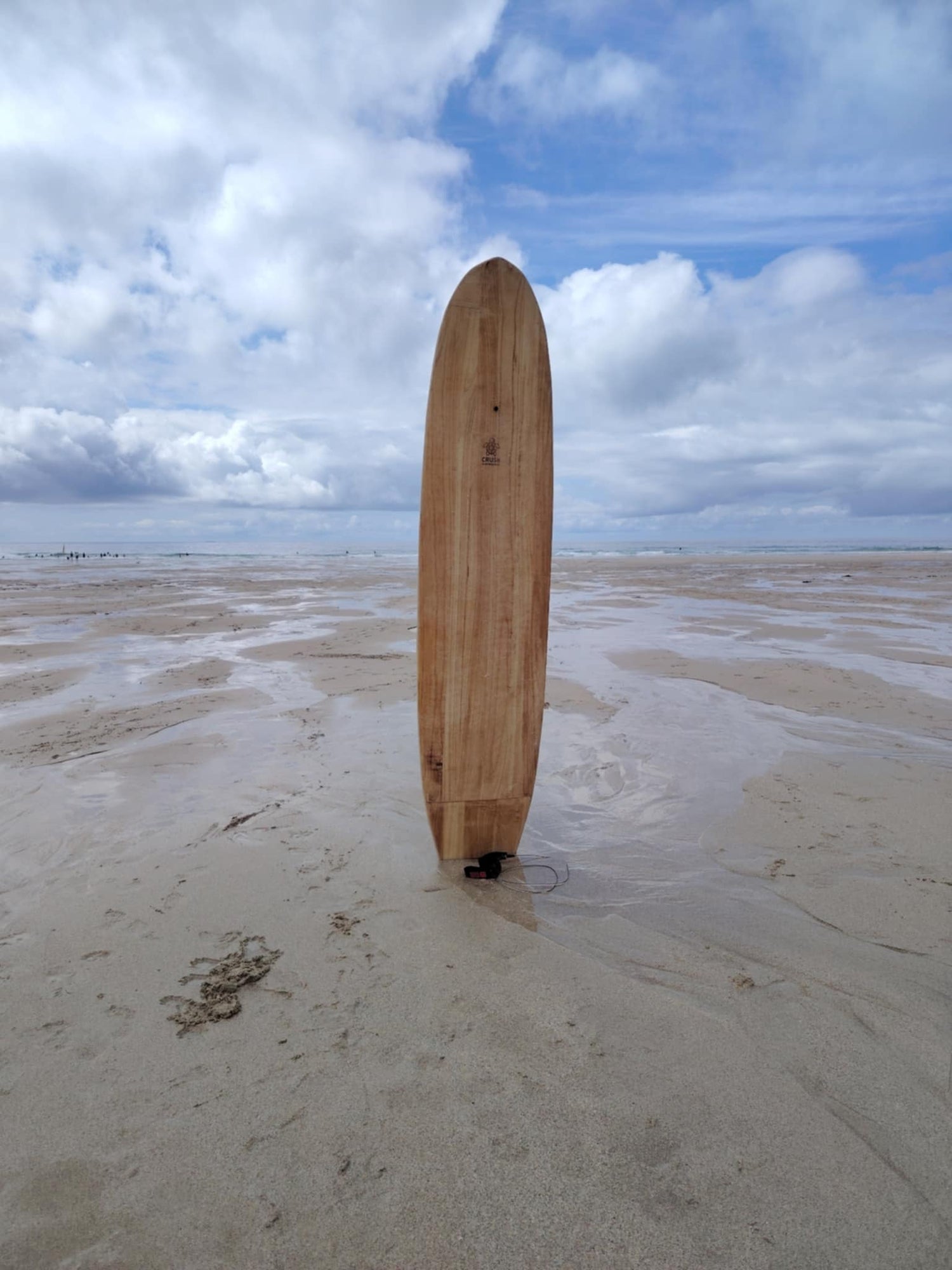 Experience the thrill of surfing on a unique handcrafted hollow wooden surfboard, expertly crafted for optimal performance and durability.